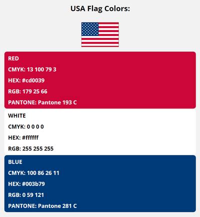 Web the united states of america flag features three primary colors: Web united states of america (usa) flag color codes with hex, rgb, cmyk, pantone (pms), ral, ncs values. Old glory red, old glory blue, white.